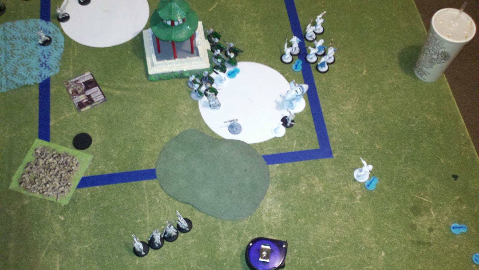 The following picture gives you the overall board view. You can see the two armies along with the control zones. This was the first scenario I had ever played beside caster kill and kill box, so I was excited to try something new.